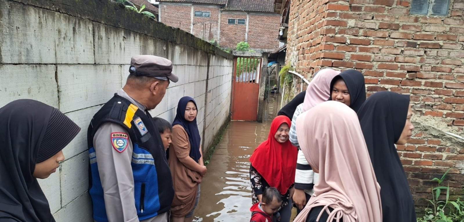Banjir Rendam Permukiman di Karangpawitan, Polsek Karangpawitan Sigap Cek TKP dan Lakukan Penanganan