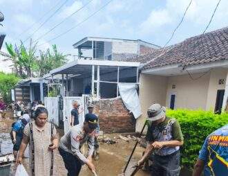 Banjir Rendam Permukiman di Karangpawitan, Polisi Sigap Cek TKP dan Lakukan Penanganan