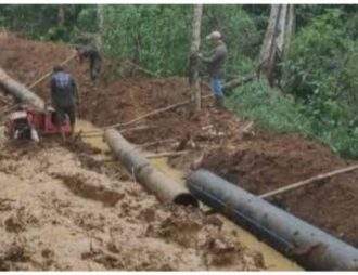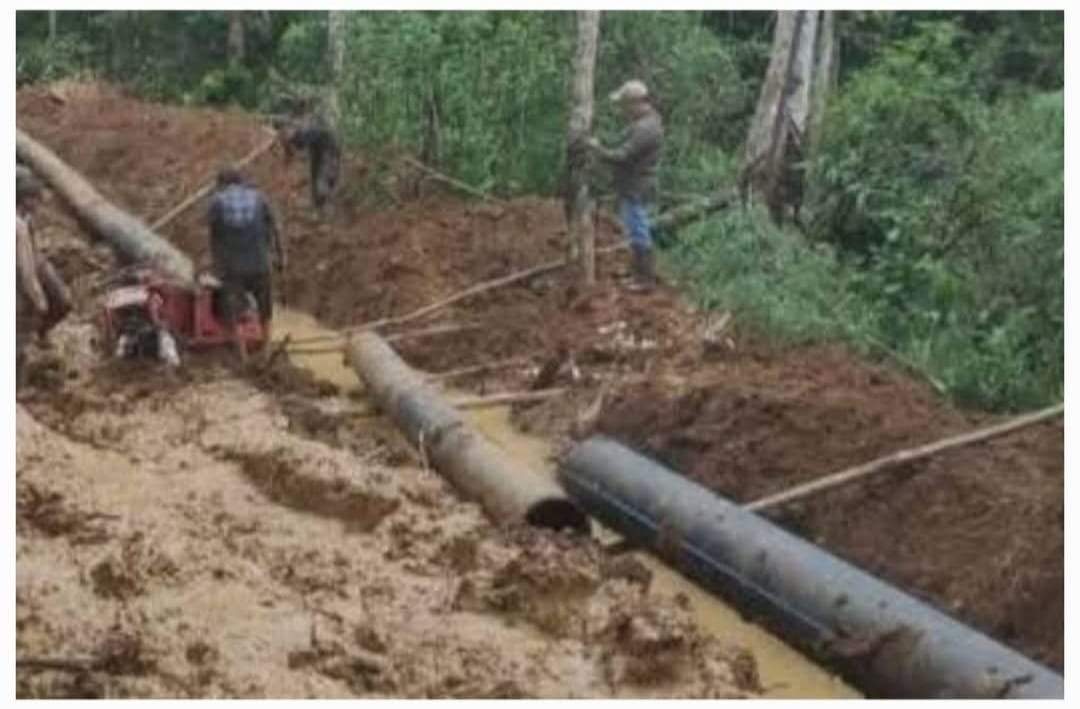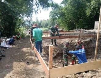 Semangat Gotong Royong, TNI dan Warga Desa Sikasur Bangun Pondasi Jembatan Garuda
