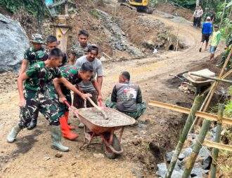TNI dan Warga Gotong Royong Bangun Jembatan Garuda di Desa Sikasur