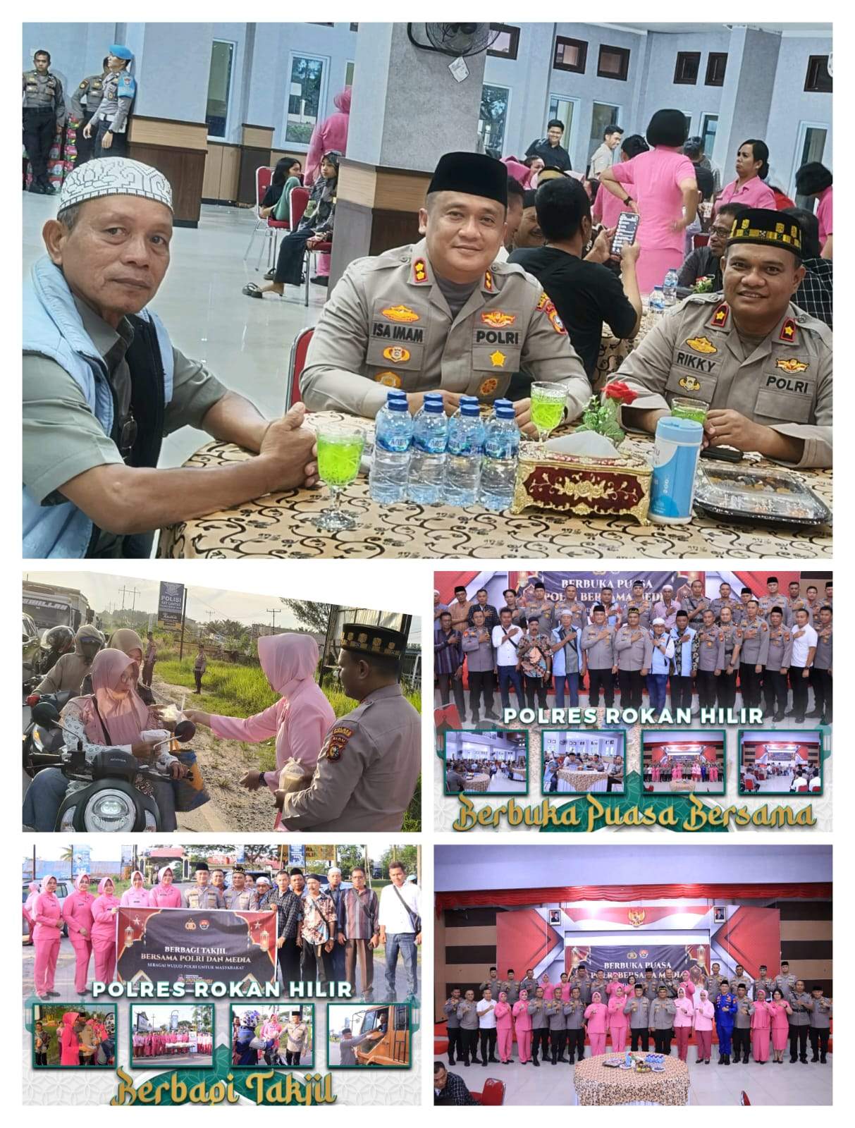 Kapolres Rohil AKBP ISA, langsung menggelar kegiatan Pembangunan Takjil Geratis Bersama Bayangkari melakukan bakti Religi selama di bulan suci Ramadhan 1446 H./2025 M.kegiatan hari ini bersama Bayangkari dan insan pers membagikan takjil gratis kepada masyarakat yang melintas di jalan,di jalan lintas depan Mako Polres Rohil,di jalan lintas Riau – Sumut Kelurahan Banjar 12 Kecamatan Tanah Putih Kabupaten Rokan Hilir ( Rohil ).Kamis Tanggal 13 Maret 2025 Pukul 17 : 30 Wib. Kegiatan ini dipimpin oleh Kapolres Rohil AKBP Isa,SIK.MH.Wakapolres Rohil Kompol Rikky Operiady S.Sos,SIK.,MIK ,PJU diantaranya para Kasat,Kabag Kasi dan Perwira serta Kapolsek Se jajaran Polres Rohil di tidak ketinggalan ketua Bhayangkari Cabang Ny.Fikih Isa serta pengurus Bhayangkari Cabang dan Ranting.