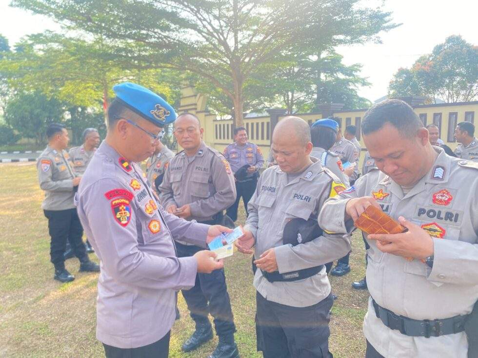 Selain itu, personil Propam juga memeriksa handphone untuk menghindari potensi penyalahgunaan teknologi seperti judi online. Tujuannya untuk memastikan anggota tetap berkomitmen dalam memberantas segala bentuk perjudian, termasuk judi online, yang marak terjadi di masyarakat.