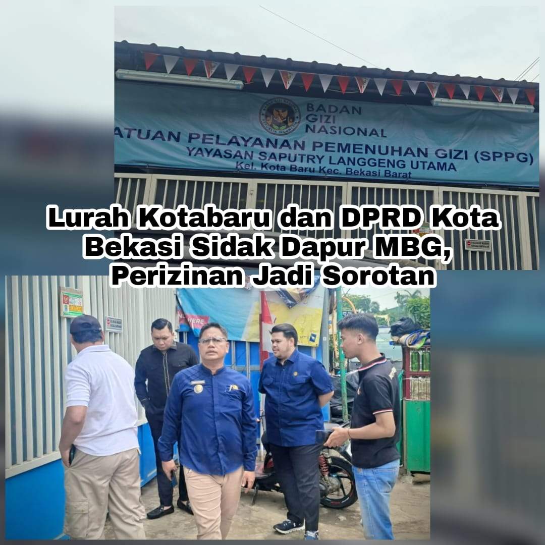 Kota Bekasi, 3 Oktober 2025 – Menyusul insiden dugaan keracunan yang dialami sejumlah siswa SDN Kotabaru 3 pada hari Kamis (2 Oktober 2025), Lurah Kotabaru, Agus H Mamun, S.Sos.i, N.Lp, bersama anggota DPRD Kota Bekasi melakukan inspeksi mendadak (sidak) ke dapur penyedia program Makan Bergizi Gratis (MBG) di Jl. Regency, Kotabaru, Bekasi Barat, kemarin. Sidak ini bertujuan untuk memastikan standar keamanan dan perizinan dapur MBG terpenuhi.