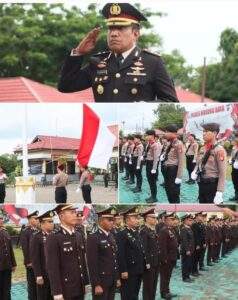 Upacara yang dimulai pukul 07.30 WIB itu berlangsung khidmat dan penuh semangat nasionalisme, diikuti oleh seluruh pejabat utama (PJU), ASN, serta personel Polres Murung Raya.
