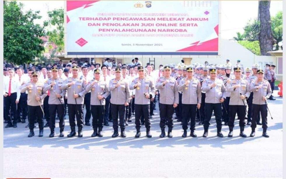 Kegiatan ini digelar dalam rangka pengawasan melekat (Waskat) terhadap anggota Polri, serta menegaskan komitmen seluruh personel untuk menolak praktik judi online dan penyalahgunaan narkoba. Kegiatan dihadiri oleh PJU Polda Jambi, seluruh personel Polda Jambi, Kapolres/ta jajaran, serta personel Polres/ta jajaran melalui Zoom Meeting, sehingga seluruh jajaran dapat berpartisipasi secara serentak.
