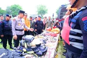 Usai pelaksanaan apel, dilakukan pemeriksaan kesiapan personel dan perlengkapan dari berbagai unsur, antara lain Sabhara Polres Tanjung Jabung Timur, Satuan Polisi Air dan Udara (Sat Polairud), Basarnas, dan BPBD.