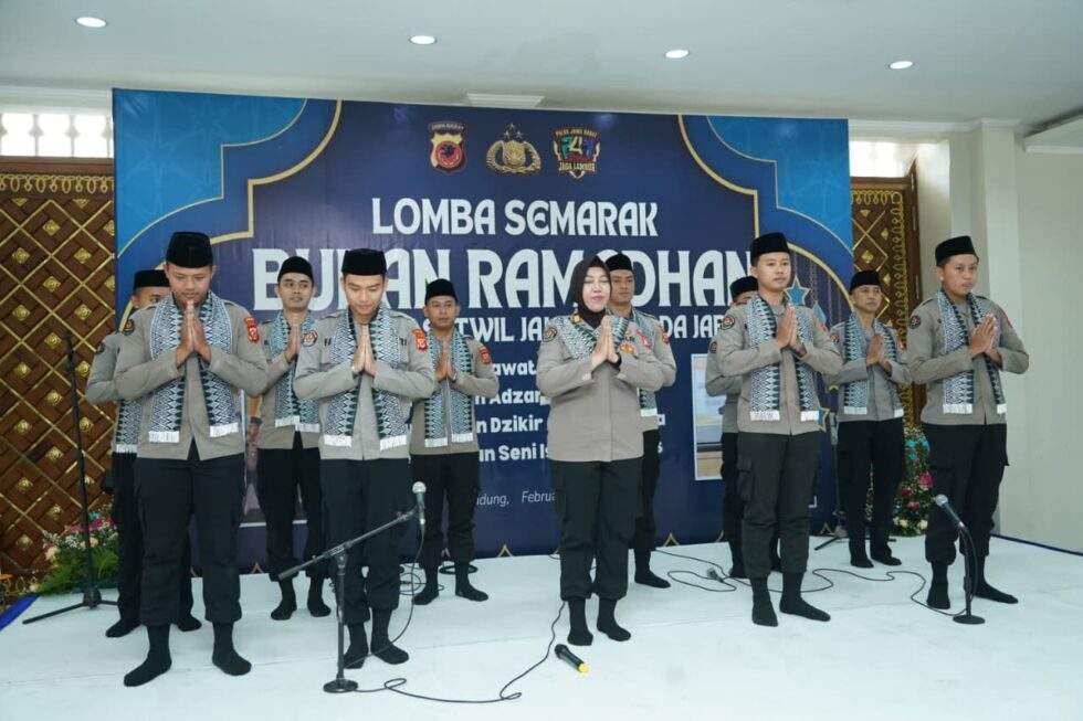– Polda Jawa Barat melaksanakan lomba melantunkan dzikir Asmaul Husna dalam rangka kegiatan Semarak Bulan Ramadan yang diikuti oleh satuan kerja (Satker) dan satuan wilayah (Satwil) jajaran Polda Jabar. Rabu, (25/2/2026). Kegiatan tersebut digelar sebagai bagian dari upaya menyemarakkan bulan suci Ramadan sekaligus meningkatkan keimanan dan ketakwaan seluruh personel.