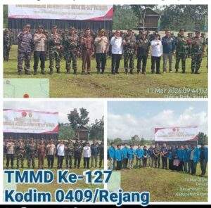 Rejang Lebong, MP-POLRI – Program TNI Manunggal Membangun Desa (TMMD) Ke-127 yang dilaksanakan oleh Kodim 0409/Rejang Lebong resmi ditutup melalui upacara di Lapangan SMA Negeri 3 Rejang Lebong, Rabu (11/03/2026).