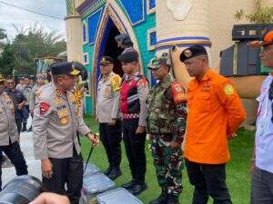 – Kapolda Jawa Barat Irjen Pol. Dr. Rudi Setiawan, S.H., S.I.K., M.H. memberikan tali asih kepada personel gabungan yang bertugas melaksanakan pengaturan lalu lintas di Pos Polisi Hoegeng Simpang Gadog, Kabupaten Bogor, pada Senin (23/3/2026).