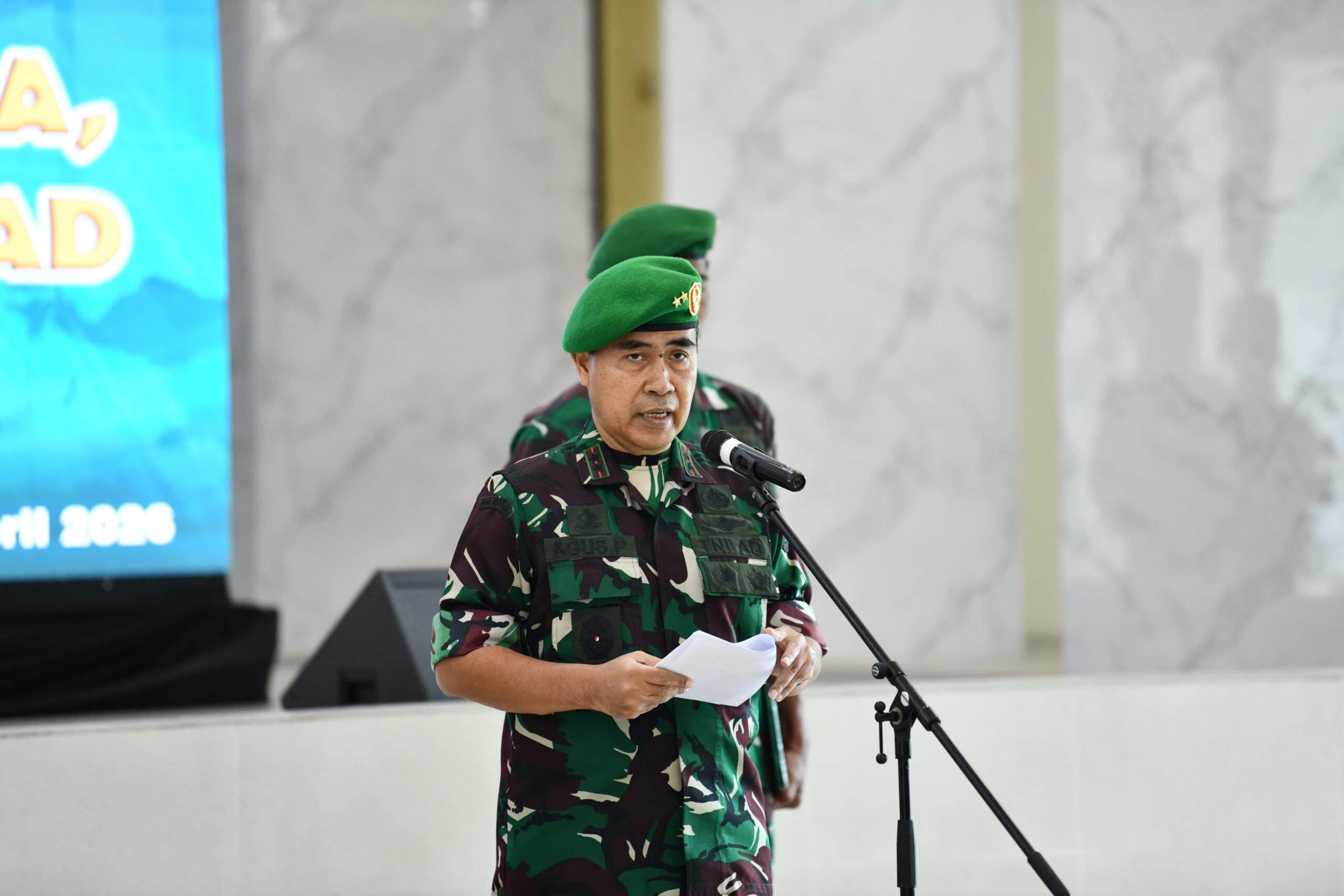 – Jakarta, Wakil Komandan Pusat Teritorial Angkatan Darat (Wadan Pusterad) Mayjen TNI Agus Prangarso, S.Sos., memimpin acara Laporan Korps Kenaikan Pangkat Perwira, Bintara, dan Tamtama Pusterad, yang digelar di Aula Gajah Mada Mapusterad, Jl. Setu Cipayung Jakarta Timur, Rabu (1/4/2026).
