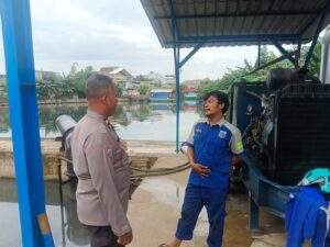 Dalam kegiatan tersebut, Aiptu Turyono melakukan monitoring terhadap kesiapan mesin pompa air yang digunakan untuk mengantisipasi genangan, khususnya di wilayah sekitar MCD Green Garden RW 04 dan RW 08.