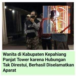 Kepahiang, Bengkulu, MP-POLRI – Seorang wanita berinisial S melakukan aksi berbahaya dengan memanjat sebuah tower, diduga sebagai bentuk tekanan emosional akibat hubungan asmara yang tidak mendapat restu keluarga.
