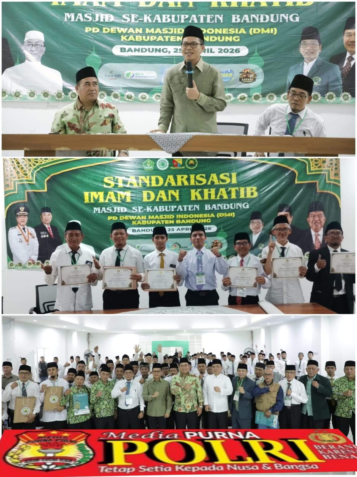 Kabupaten Bandung, MP-POLRI – Bupati Bandung, Kang DS, dan Kementerian Agama (Kemenag) Kabupaten Bandung memberikan apresiasi tinggi terhadap kegiatan standarisasi imam dan khatib gelombang ke-2 yang diselenggarakan oleh Dewan Masjid Indonesia (DMI) Kabupaten Bandung di Gedung SLRT Soreang (25/04/2026).